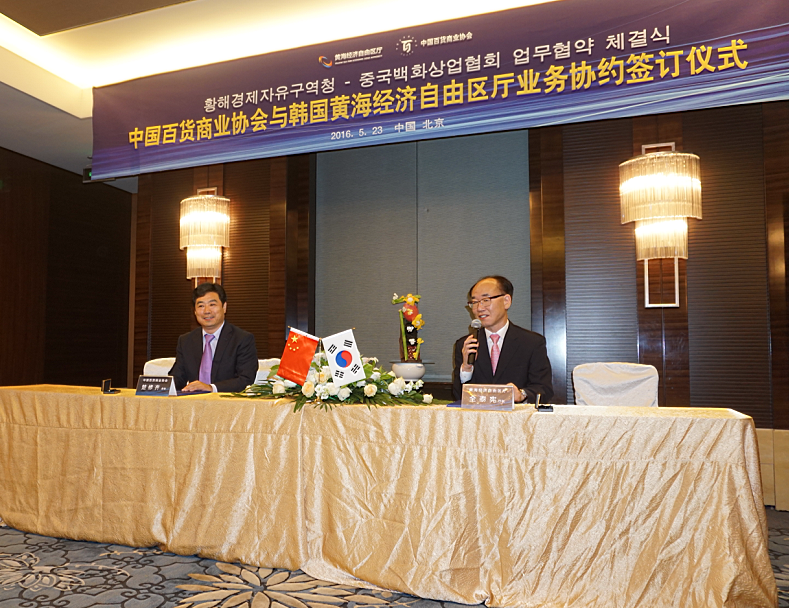 5月23日,中國百貨商業(yè)協(xié)會(huì)與韓國黃海經(jīng)濟(jì)自由區(qū)廳在北京簽訂戰(zhàn)略合作協(xié)議,雙方將共同推動(dòng)中國流通企業(yè)到韓國黃海經(jīng)濟(jì)自由區(qū)廳投資發(fā)展。中國百貨商業(yè)協(xié)會(huì)會(huì)長楚修齊、韓國黃海經(jīng)濟(jì)自由區(qū)廳長全泰憲分別簽署協(xié)議。