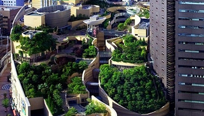 位于日本大阪市的難波公園是購物中心自然景觀化的杰作和代表。雖然叫公園,但難波公園是一個不折不扣的大型購物商城。