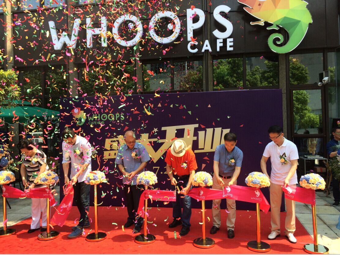 10點18分,剪彩儀式正式開始,為Whoops Café中潭路店剪彩的嘉賓分別是:三林集團中國總部領導程光先生、原區領導童建齡先生、上海文廣演藝集團副總裁馬騁晨先生、區國資委主任袁忠民先生、原上海七百(集團)有限公司黨委書記、副董事長周春妹女士、上海弘洋投資有限公司董事長孫昌基先生。區國資委主任袁忠民先生在開幕式上致辭,表達了對Whoops Cafe這一新興品牌的祝福與期望,他提出:“只要Whoops品牌始終堅持以人為本,圍繞顧客需求不斷改進和提升,就一定能夠創造出別具一格的體驗式消費,就一定能夠培育出一個讓人耳熟能詳的咖啡品牌!”