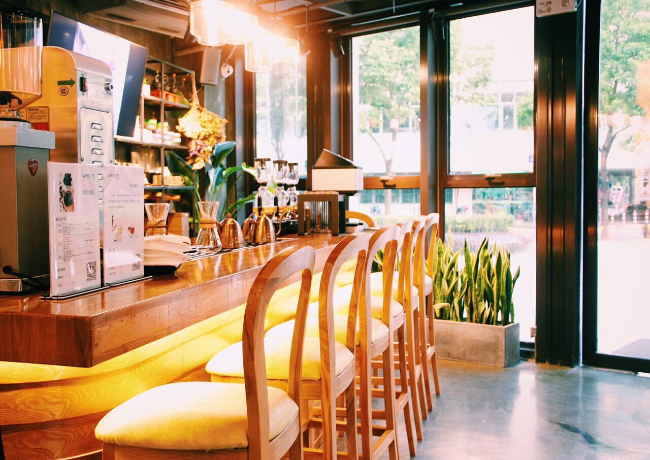 除了以上幾個特色之外,中潭路店的裝修也讓人眼前一亮。空曠明亮的一樓、舒適慵懶的二樓、擁有著濃郁商務氣息的三樓共同構成了Whoops Café中潭路店。顧客一進門,引入眼簾的便是栩栩如生的變色龍主題3D彩繪,木質桌椅配上深灰地漆顯得格外扎實穩重,洋溢著南美風情的碩大壁畫又為這份穩重添上些許活潑不羈的氛圍。沿著木質階梯拾級而上,作為層中層的二樓巧妙地利用豆袋彌補了低矮的不足,一杯咖啡,一份飲品,一只變色龍玩偶,一件溫暖的披肩,好不舒服愜意!領略完二樓的風情,繼續往上走,眼前一片通透開朗。三樓擁有著偌大的落地窗,再搭配上簡潔的木質長桌、皮質沙發,顯得格外大氣。信步游走于三樓,顧客一定會被展物架上小巧精致的咖啡物件裝飾吸引,愛看書的小伙伴也可以靜靜地翻閱著雜志度過一段美妙的時光。