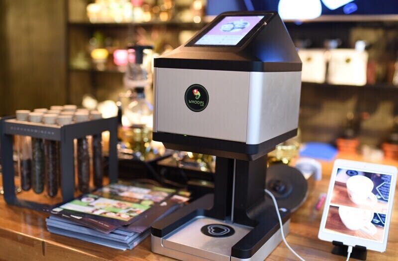 另外,Whoops Café中潭路店還為資深的咖啡愛好者打造了一個全開放的精品咖啡互動吧臺,在那里顧客不僅可以和資深咖啡師交流互動,還能根據對于咖啡的消費口味習慣選擇相匹配的咖啡豆種,更可以自行完成咖啡的制作。旁邊的3D拉花設備也是別具一格,顧客可以突破想象,將華麗的圖形、正能量的格言、幽默的話語、個性化的標簽,甚至可以將顧客獨一無二的個性照片直接打印到咖啡上,滿足了不少顧客對新奇特的體驗和追求。