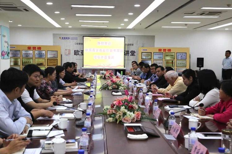 圖為歐亞集團曹和平董事長分享:“歐亞集團的經營理念、企業文化及戰略布局”