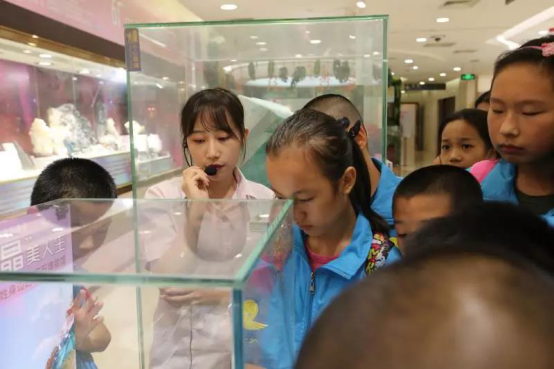 在這里,孩子們可以親身感受到菜百總店四層寶石博物館中珍藏的各種礦物標(biāo)本!還可以聆聽來自國家珠寶玉石質(zhì)量監(jiān)督檢驗中心(NGTC)專家柴萌老師的精彩科普知識講解。