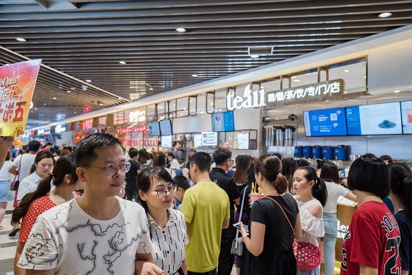 同時,備受期待的東百中心C館負二樓商業街,也在七夕當天正式開放試營業。其中的美食街區設計風格年輕時尚,引進了小湯主、仰望包角布、流川楓等諸多深受年輕人追捧的網紅品牌,吸引大量游客和福州市民前來,開業現場客流爆滿,美食區更是火爆到下午近2點依然大排長龍。
