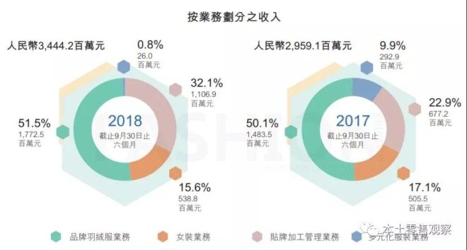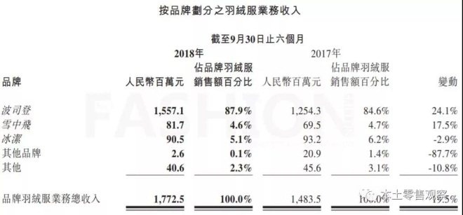 4-9月,波司登羽絨收入按年大漲24.1%至15.571億元,占羽絨服業(yè)務(wù)87.9%。