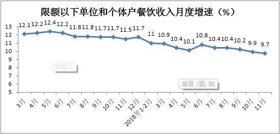 1-11月份,餐飲收入實現38294億元,累計增長9.5%,增速較1-10月份放緩0.1個百分點。其中,11月份餐飲收入同比增長8.6%,增速較上月放緩0.2個百分點。