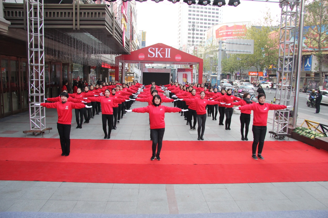 慶典儀式預熱階段,80名員工齊跳鼓樓名品中心員工健身操。她們時值芳華,意氣奮發,向社會展示了新時代下商業服務業良好的精神風貌。