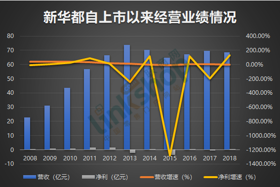 新華都自上市以來經營業績情況,數據來源:公司財報,聯商網
