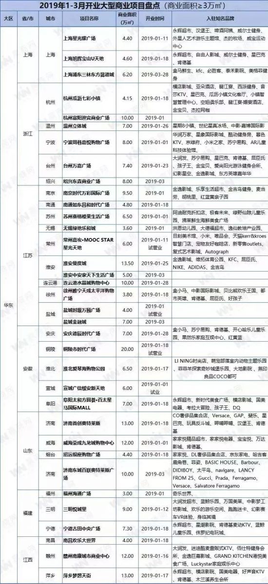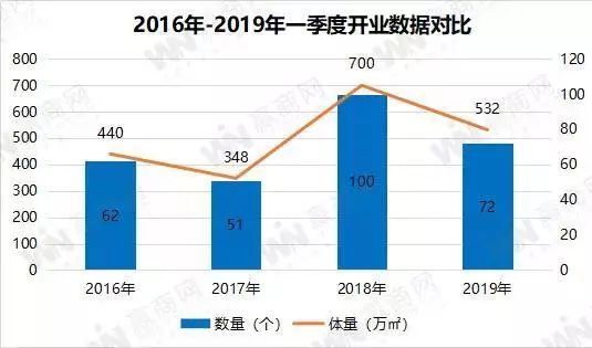 2019年一季度,全國購物中心開業(yè)熱度對比去年大幅放緩,在1月份集中開業(yè)后,2、3月份進入低谷期。