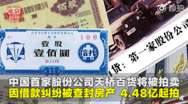 中國第一家股份公司北京天橋百貨商場即將迎來命運(yùn)轉(zhuǎn)折。記者昨天獲悉,天橋百貨因借款合同糾紛將被拍賣,目前天橋百貨已在司法網(wǎng)拍上拍,評估價(jià)5.6億元,起拍價(jià)4.48億元。