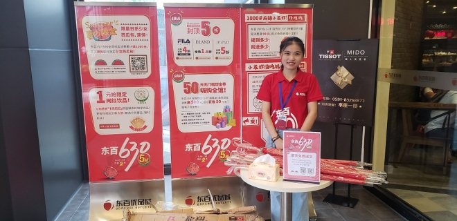 除了一貫延續的待客泊車,免費飲品等服務,為了讓顧客擁有更加便利、舒心的購物體驗,還推出了頗具特色的呼叫跑腿小哥、專屬停車位、雨天免費送傘、萬人免費吃瓜等暖心服務,希望讓所有來到東百的顧客,都能盡情購物,滿意而歸。