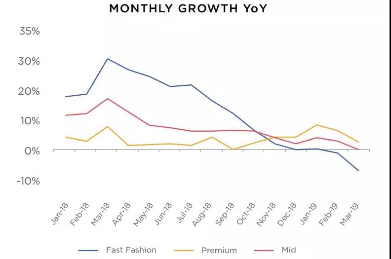 快時(shí)尚:該領(lǐng)域大多數(shù)玩家的流量下降導(dǎo)致了2019年第一季度的訪問量呈負(fù)增長.