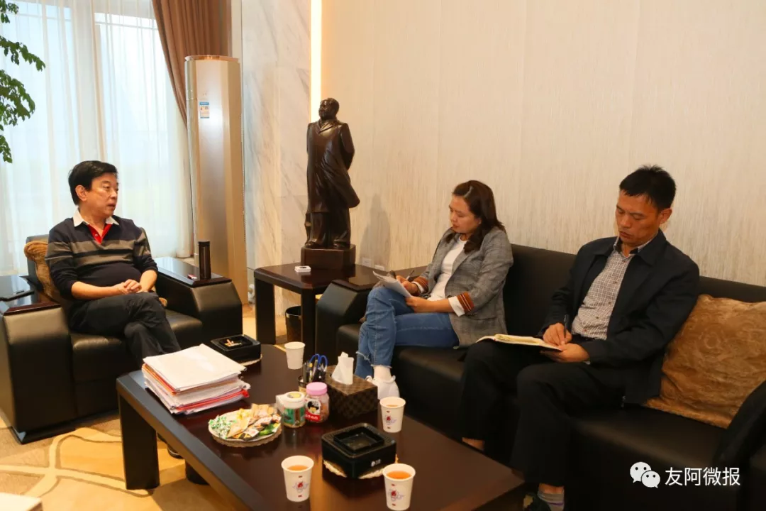 友阿微報消息 1022日,長沙市總工會舉行“不忘初心、牢記使命”主題教育和走訪活動。長沙市總工會副主席匡濤濤、長沙市總工會經濟技術部部長萬立等蒞臨公司總部開展走訪工作;公司董事長胡子敬作為著名的全國勞動模范代表,就新時期的工會工作、勞模工作等方面與前來走訪的長沙市總工會副主席匡濤濤、長沙市總工會經濟技術部部長萬立進行了交流和匯報。