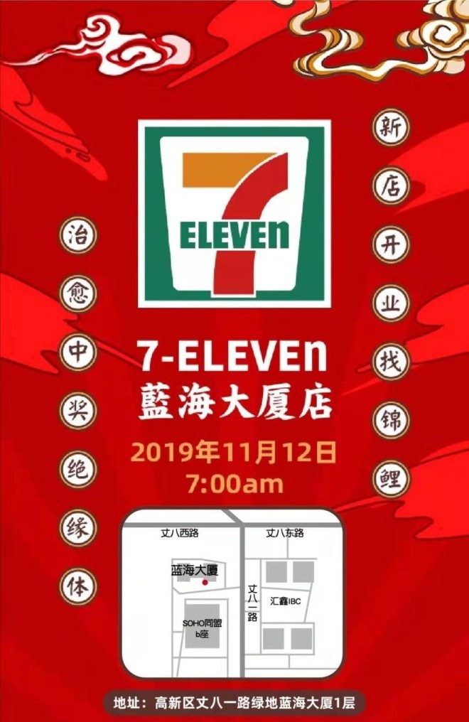 日前,7-ElEVEn陜西官方微信(以下簡稱7-11)發(fā)布消息,7-11藍(lán)海大廈店于今日(11月12日)開業(yè)。該店位于西安市高新區(qū)八一路綠地藍(lán)海大廈一層。