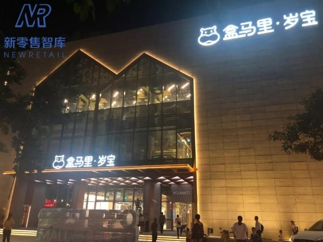 去年6月,盒馬和歲寶百貨達成合作,雙方將歲寶百貨內的歲寶超市全部改裝并翻新成了盒馬鮮生門店。