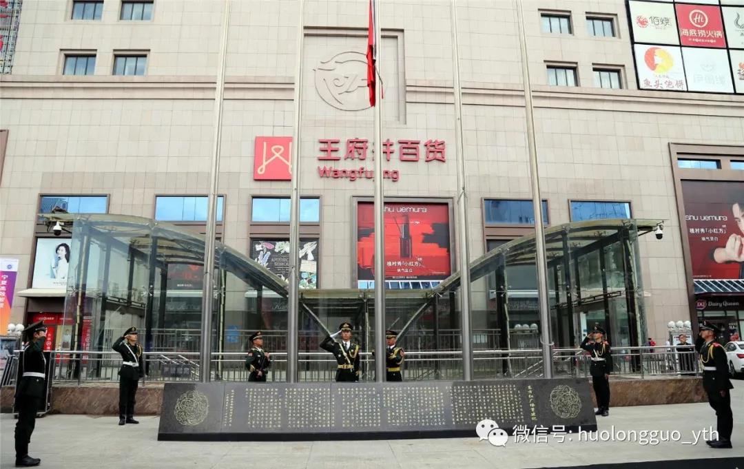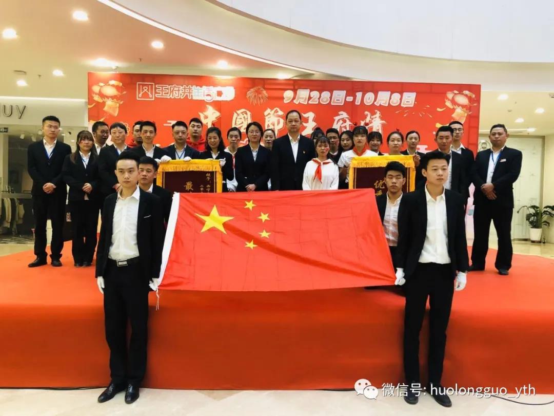 10月1日早,銀川店東方紅廣場前隆重舉行升旗儀式,二百余名員工身著王府井logo服裝,手拿小國旗,為祖國慶生。隨著鮮艷的五星紅旗冉冉升起,全體員工高聲同唱國歌,向國旗行注目禮。由朗誦者帶頭領唱《我和我的祖國》、《歌唱祖國》,全體員工用歌聲深情表達生日祝福,展現良好精神風貌。(文/王麗杰 攝影/劉寧)